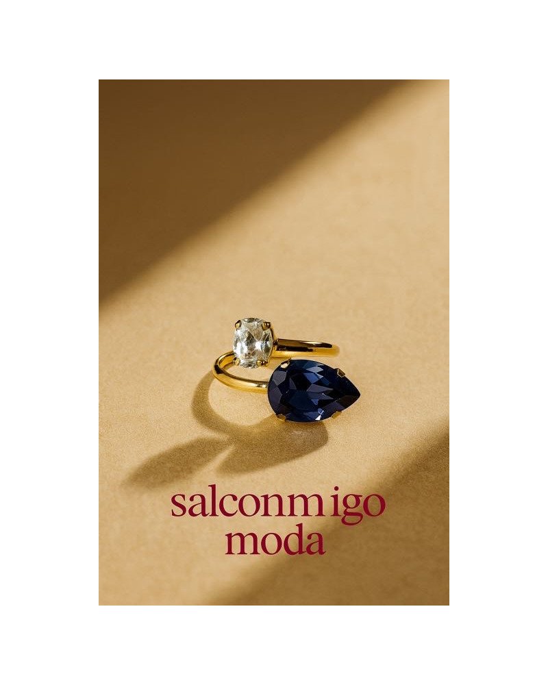 Precioso anillo adaptable con un cristal color zafiro y circonita facetada con un brillo único .
