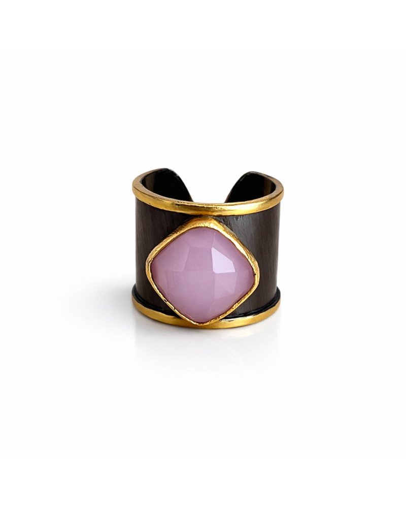 Anillo adaptable de latón esmaltado y cuarzo rosa . Un regalo fabuloso.