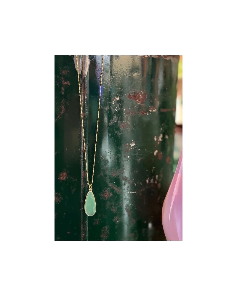 Esta gargantilla tiene una turmalina excepcional con el borde en plata con baño , y cuelga de una cadena larga de 60 cm de plata con baño de oro .