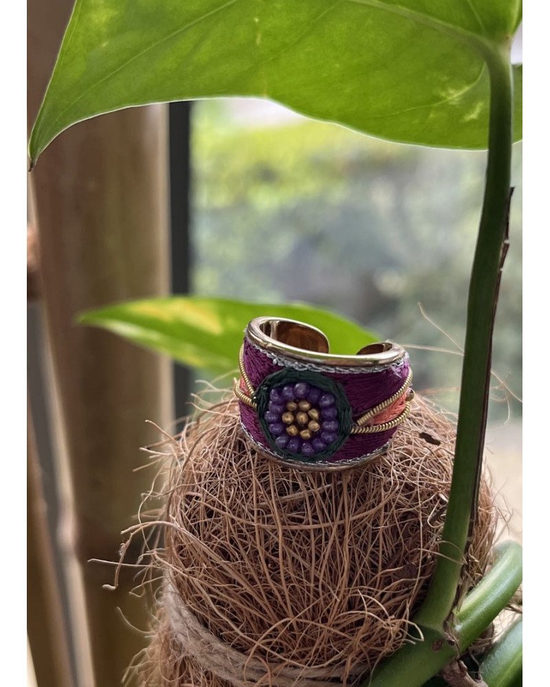 Anillo adaptable colores morado, verde y dorado , hecho a mano en la India