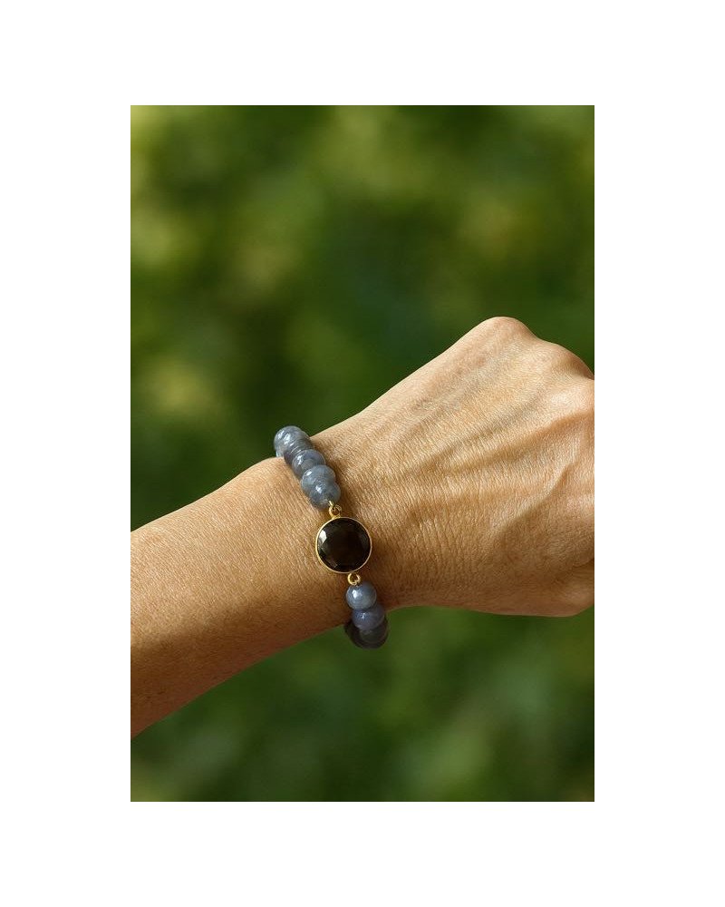 Preciosa pulsera de ágatas grises y una Ágata central montada en plata con baño de oro . Elegante y atemporal