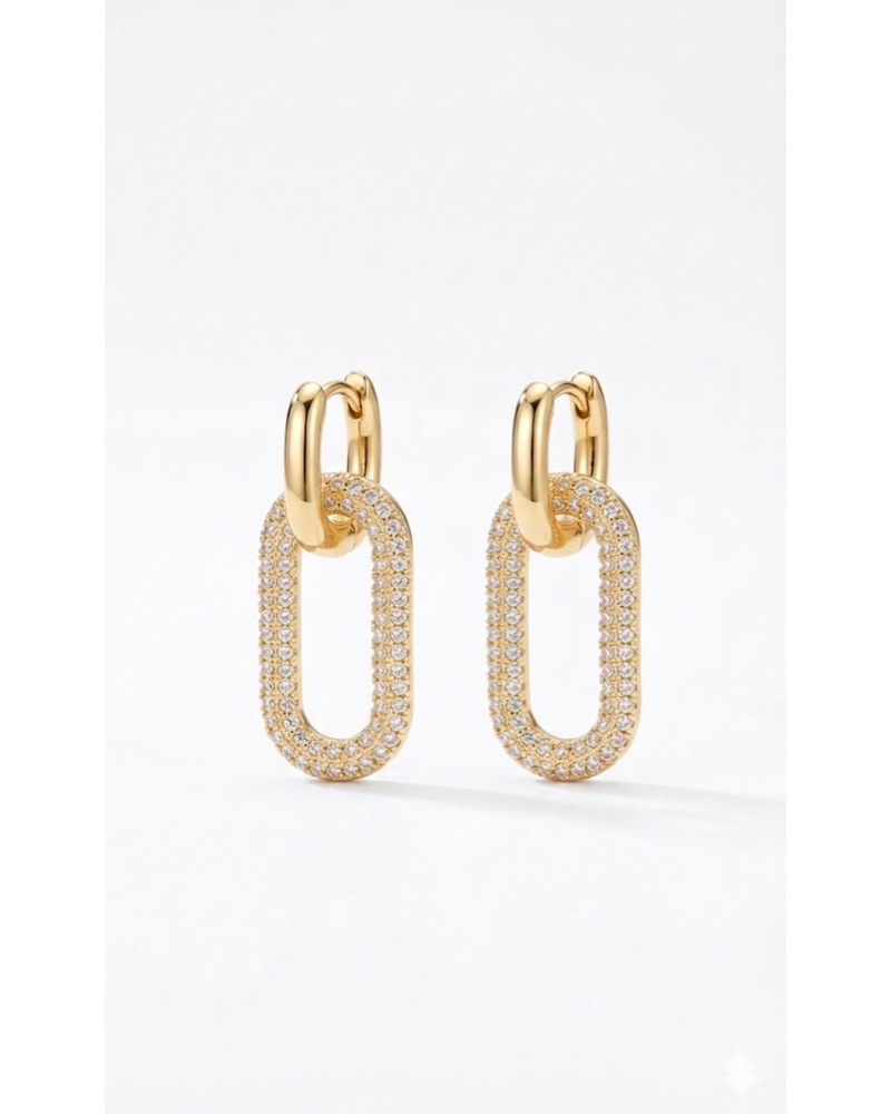 Pendientes en acero inoxidable con baño de oro y circonitas blancas . Cierre tipo omega , fantástico y muy combinables