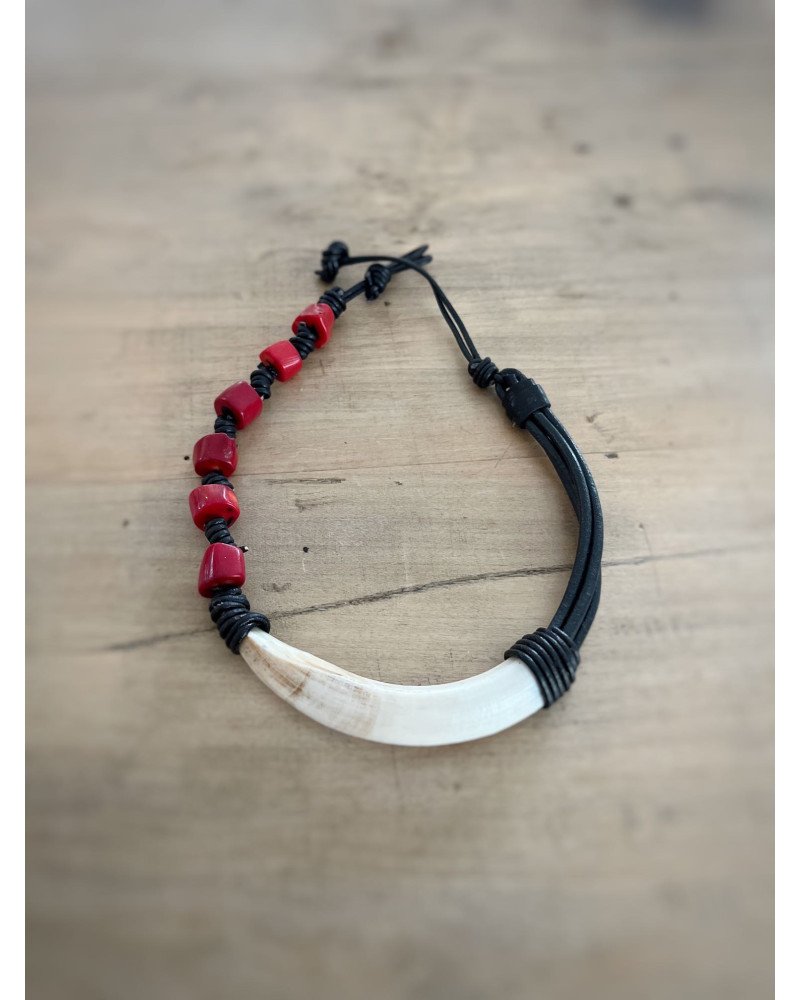 Espectacular collar diseño propio y hecho a mano . Combina dos colores maravillosos rojo y negro . Es un giro a un collar muy clásico pero evolucionado a un estilo más juvenil .