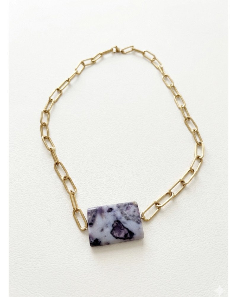 Precioso collar o chokers precioso con una pieza rectangular de fluorita denditrica, estiloso, elegante y muy combinable .