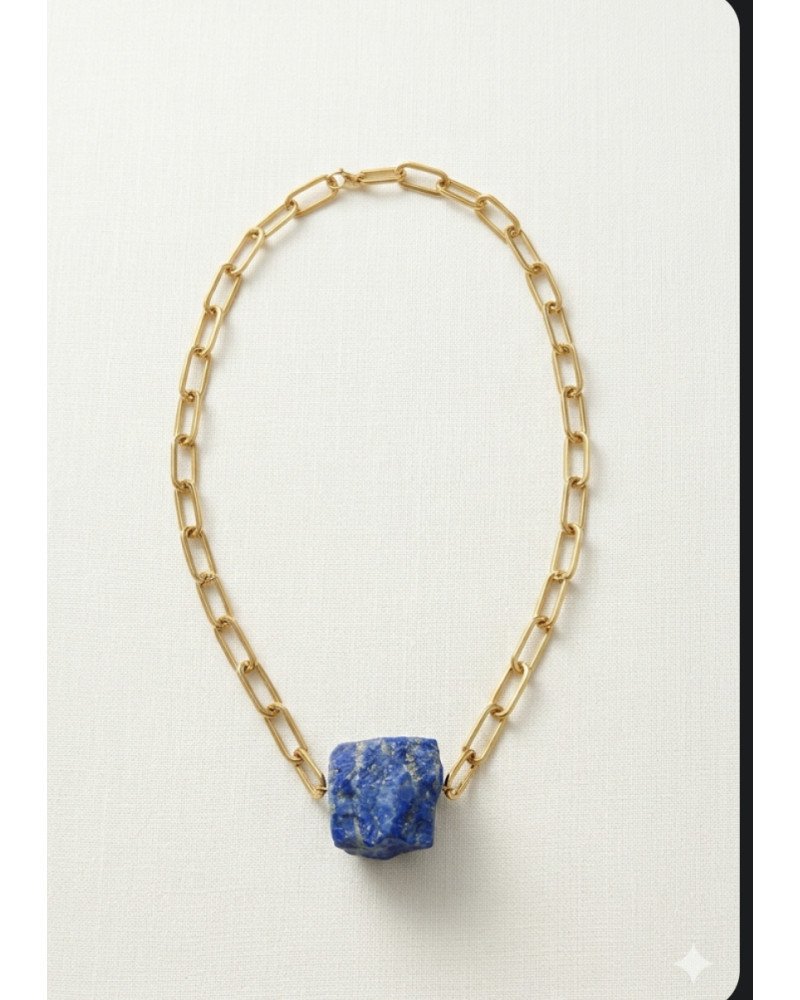 Preciosa gargantilla con una piedra natural en bruto de lapislazuli, un color que enamora ….