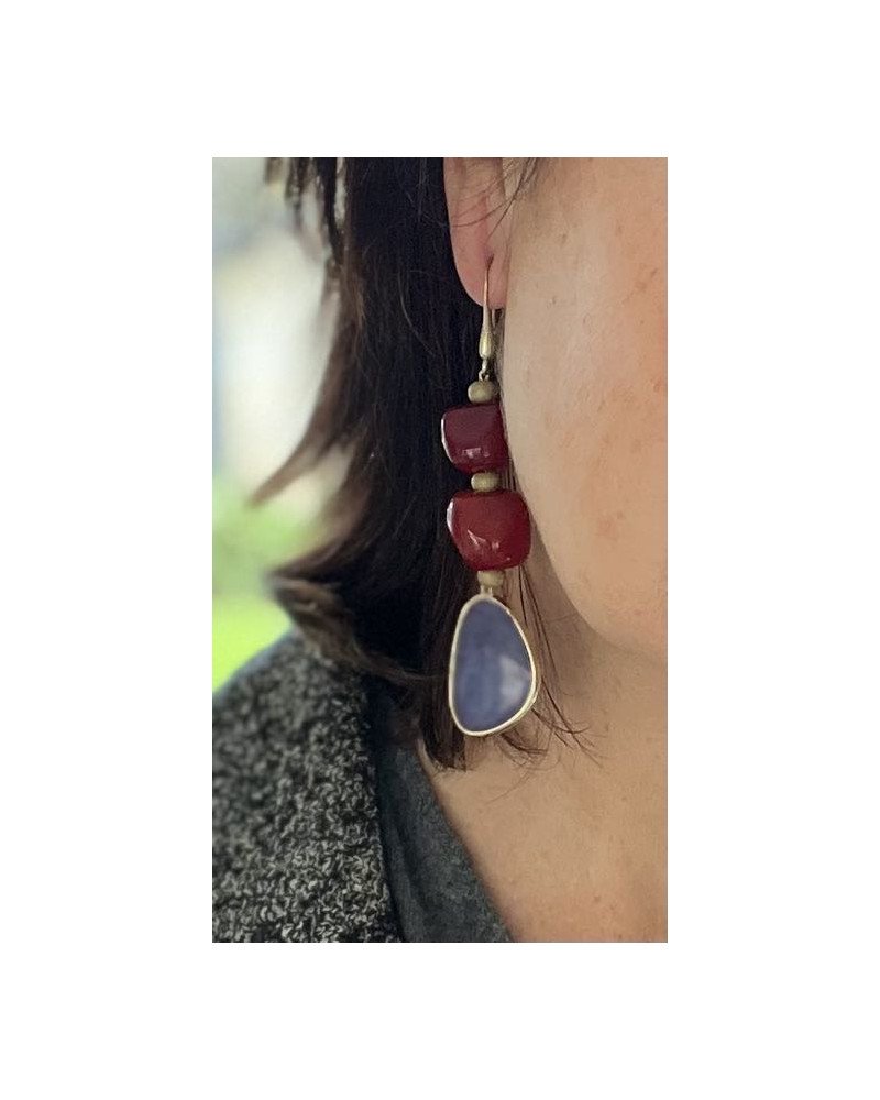 Esta combinación es especial, combina cuarzo en color morado con cuentas de resina de un rojo oscuro muy particular .