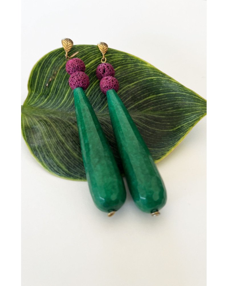 Materiales : Ágata verde y cuentas de lava morada. El gancho es de plata con baño .